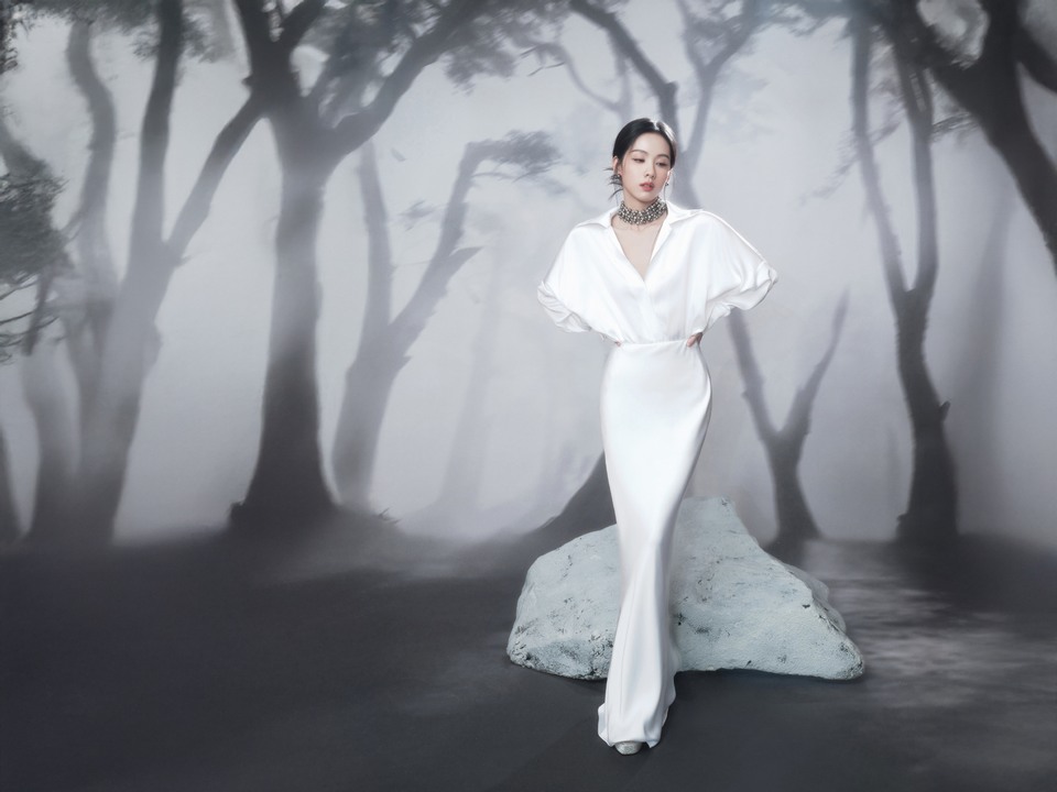 张碧晨纱袖如云朵簇拥静静伫立