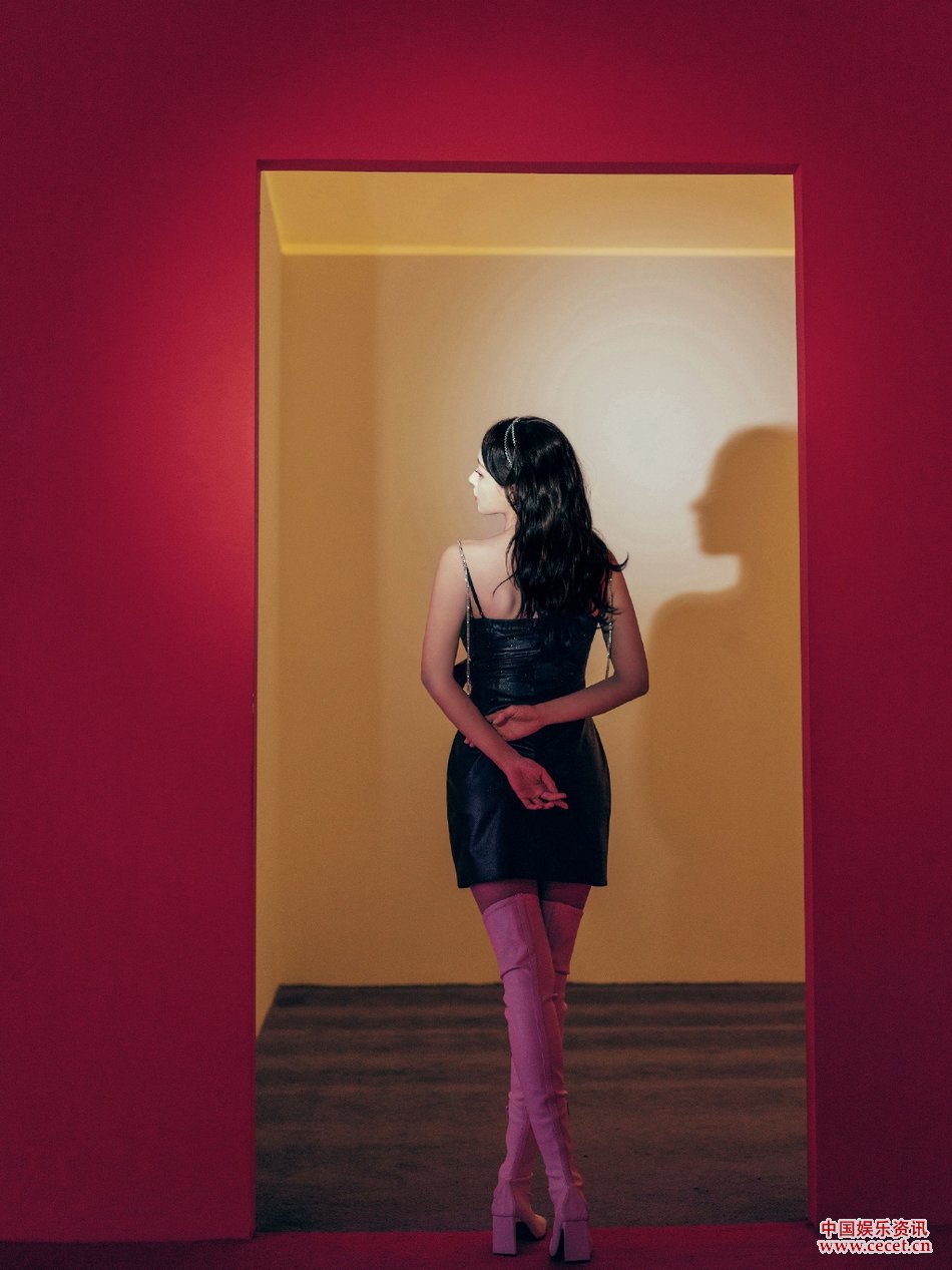 程潇怀旧胶片质感大片 黑色短裙配高靴性感迷人