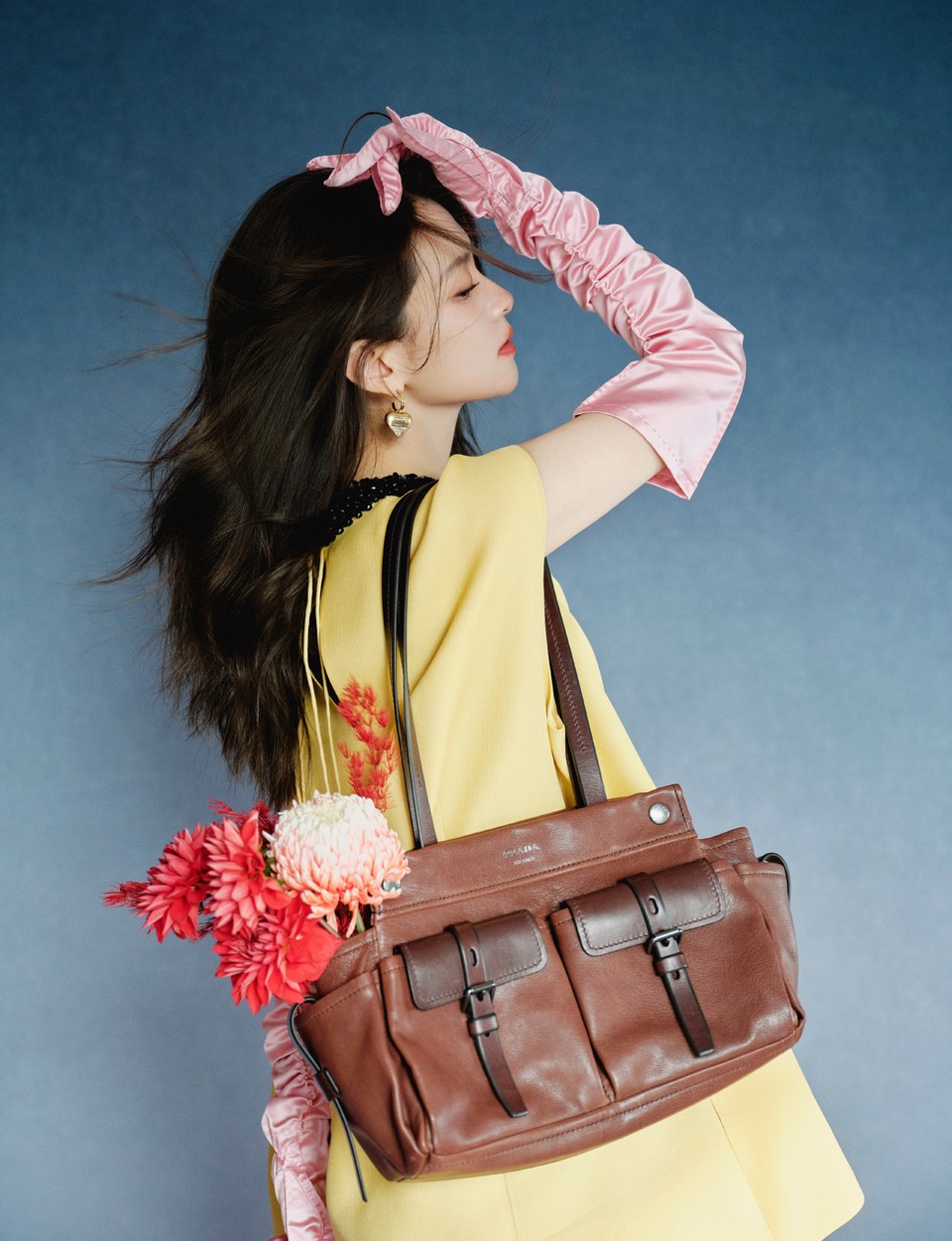 姚晨霞光余晖落在肩头