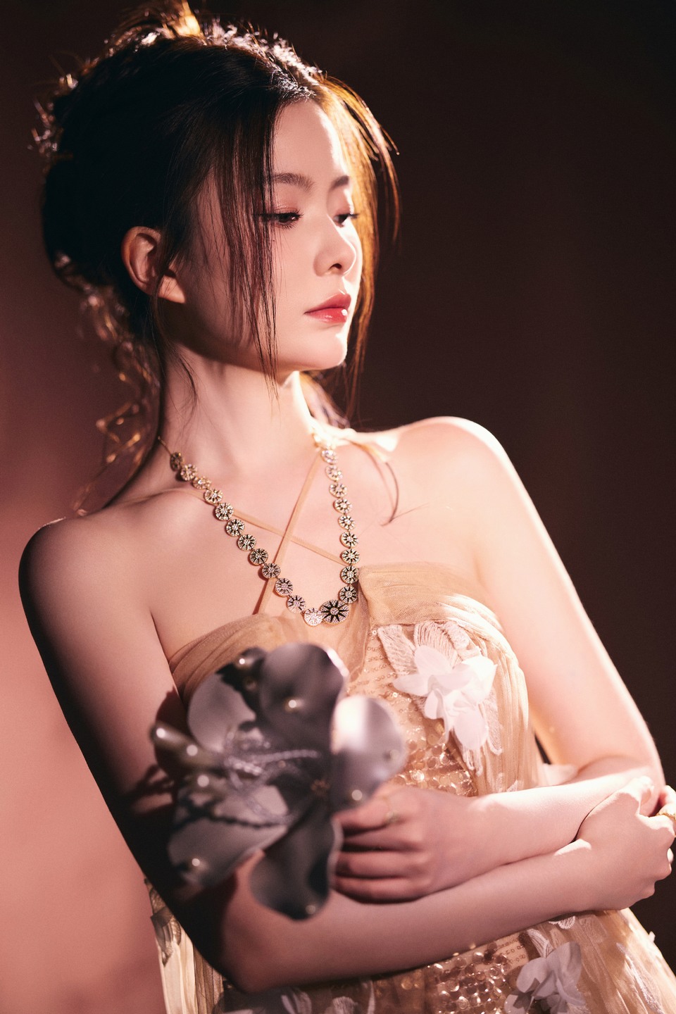 陈卓璇裸色纱裙裹挟温柔光晕 立体花簇似梦境绽放