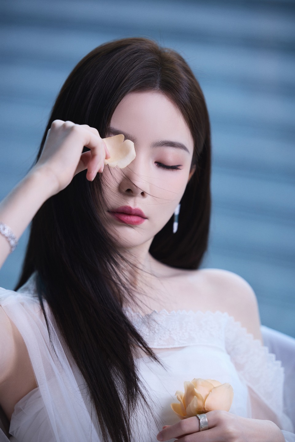 陈卓璇一袭白纱缀以蕾丝细语 薄纱随旋律轻漾成诗篇