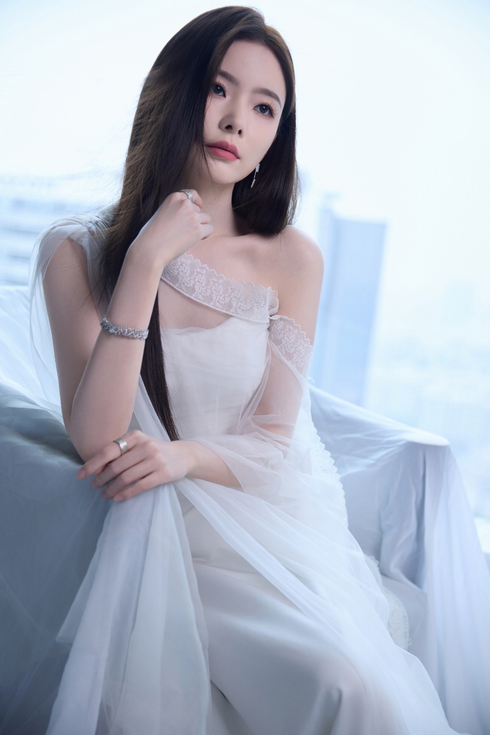 陈卓璇一袭白纱缀以蕾丝细语 薄纱随旋律轻漾成诗篇