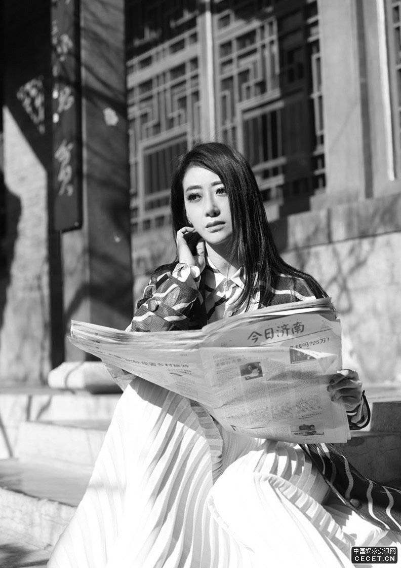 陈紫函曝光黑白文艺大片 庭院台阶上似听风吟