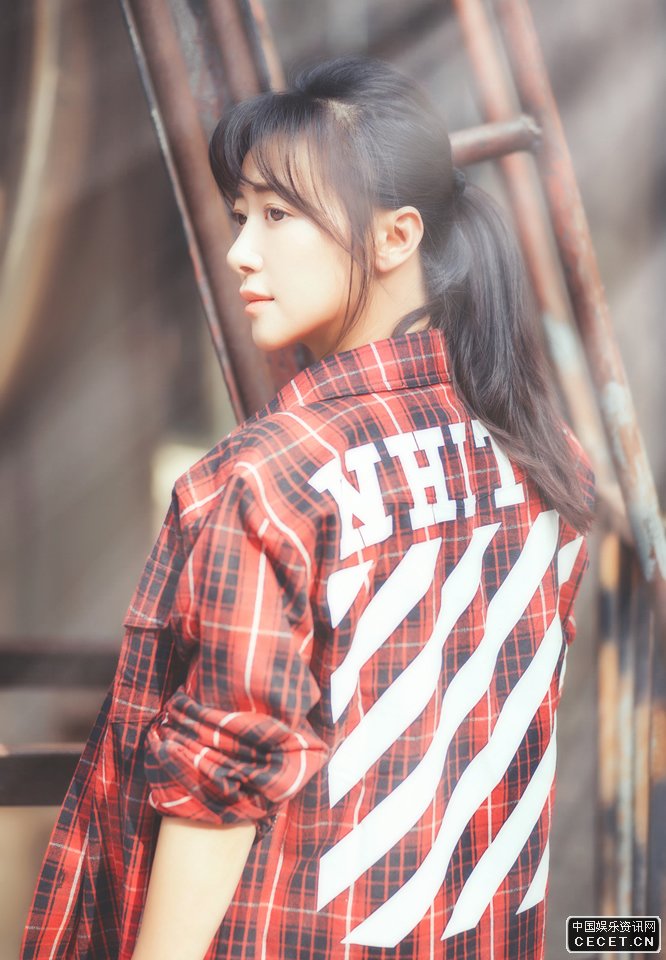 陈紫函红格子衬衫写真 散发着小女人的美丽