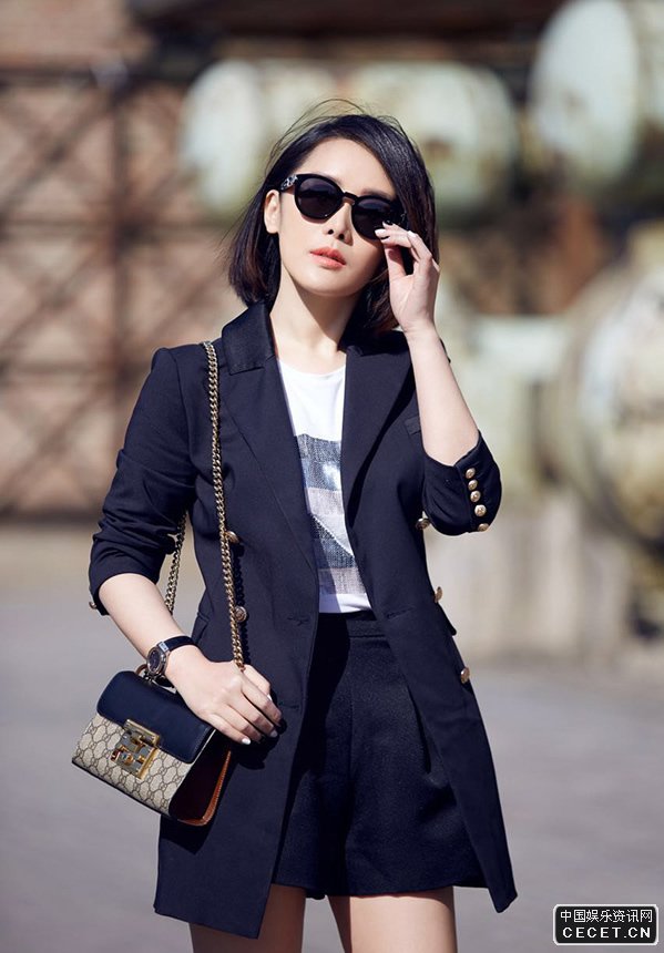 车永莉曝光时尚街拍 搭配高腰短裤攻气十足