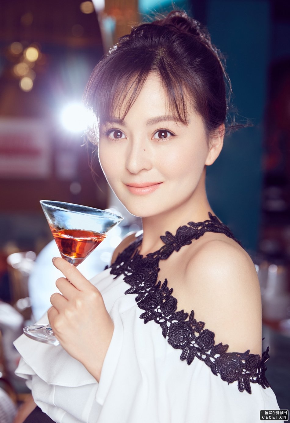 戴娇倩身处酒吧大片 黑白裙装香肩锁骨微露