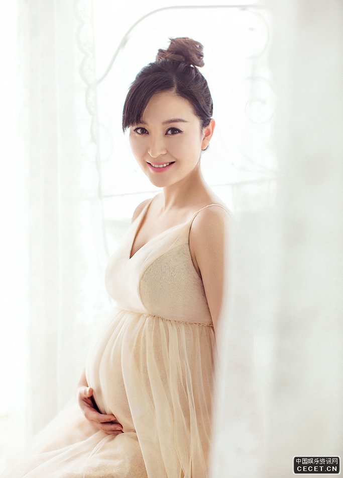 戴娇倩薄纱裙待产写真 舒心恬静显优雅气质