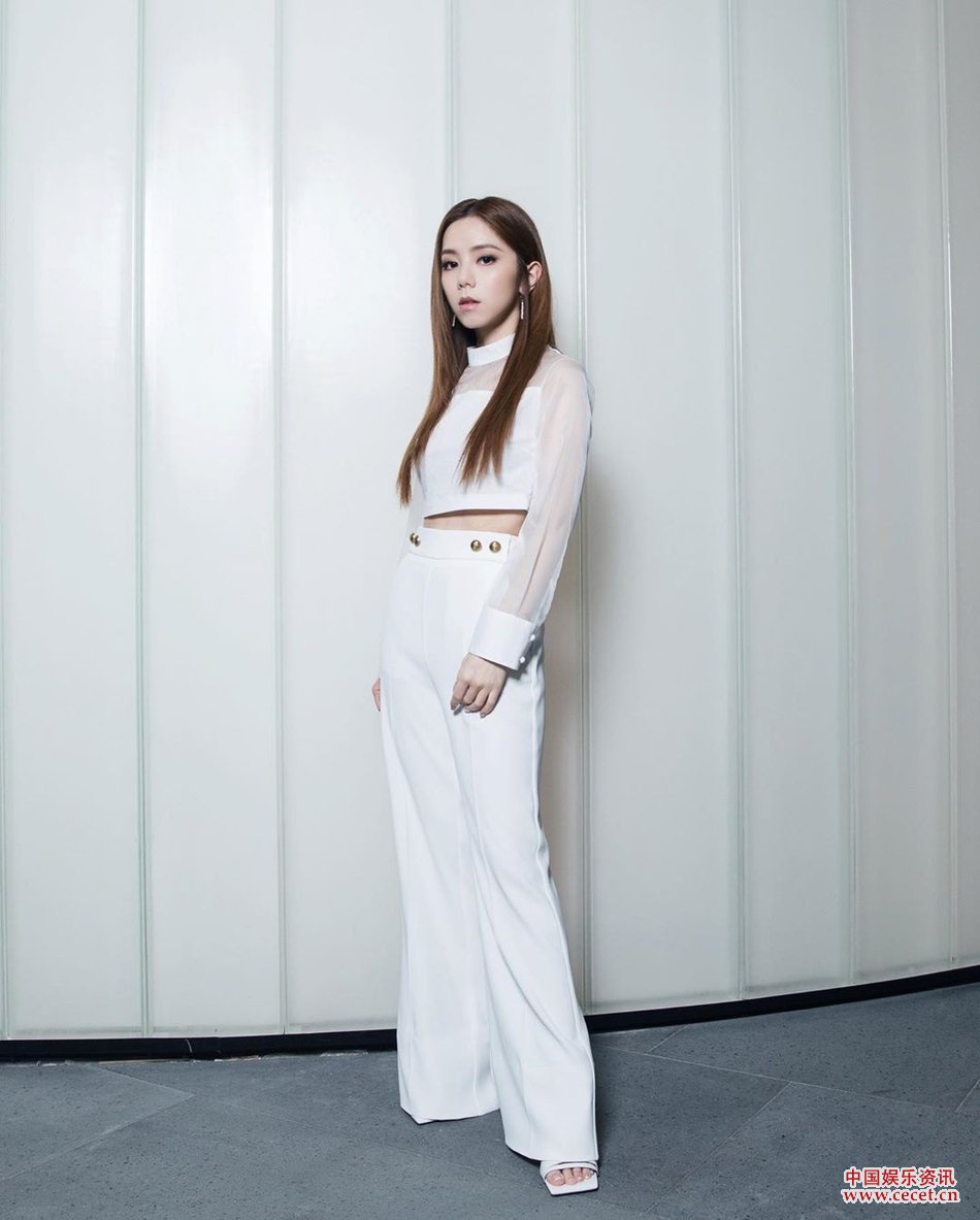 邓紫棋白色镂空上衣搭配同色长裤凹造型气场足