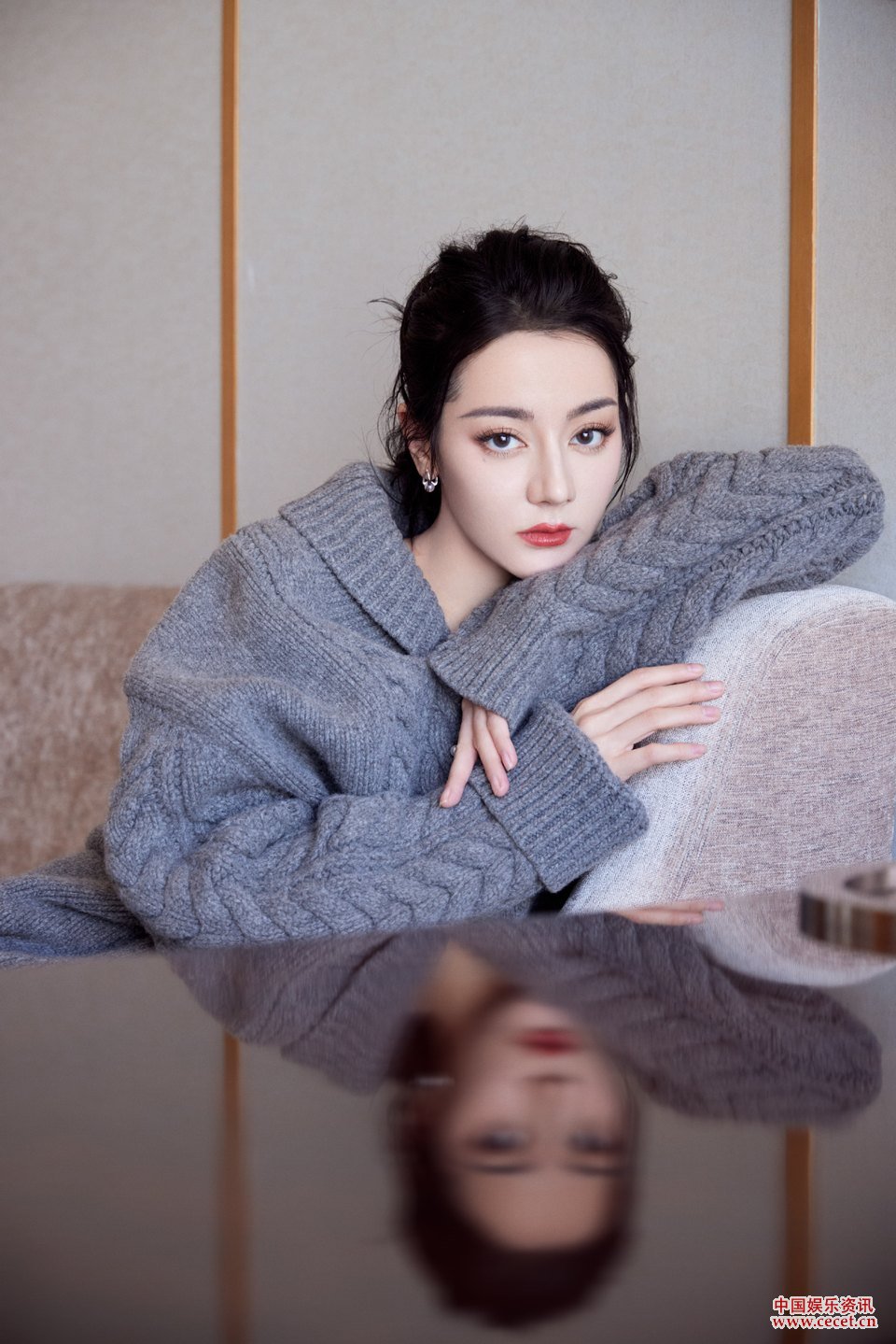 迪丽热巴毛衣搭配百褶裙 动静之间散发慵懒氛围
