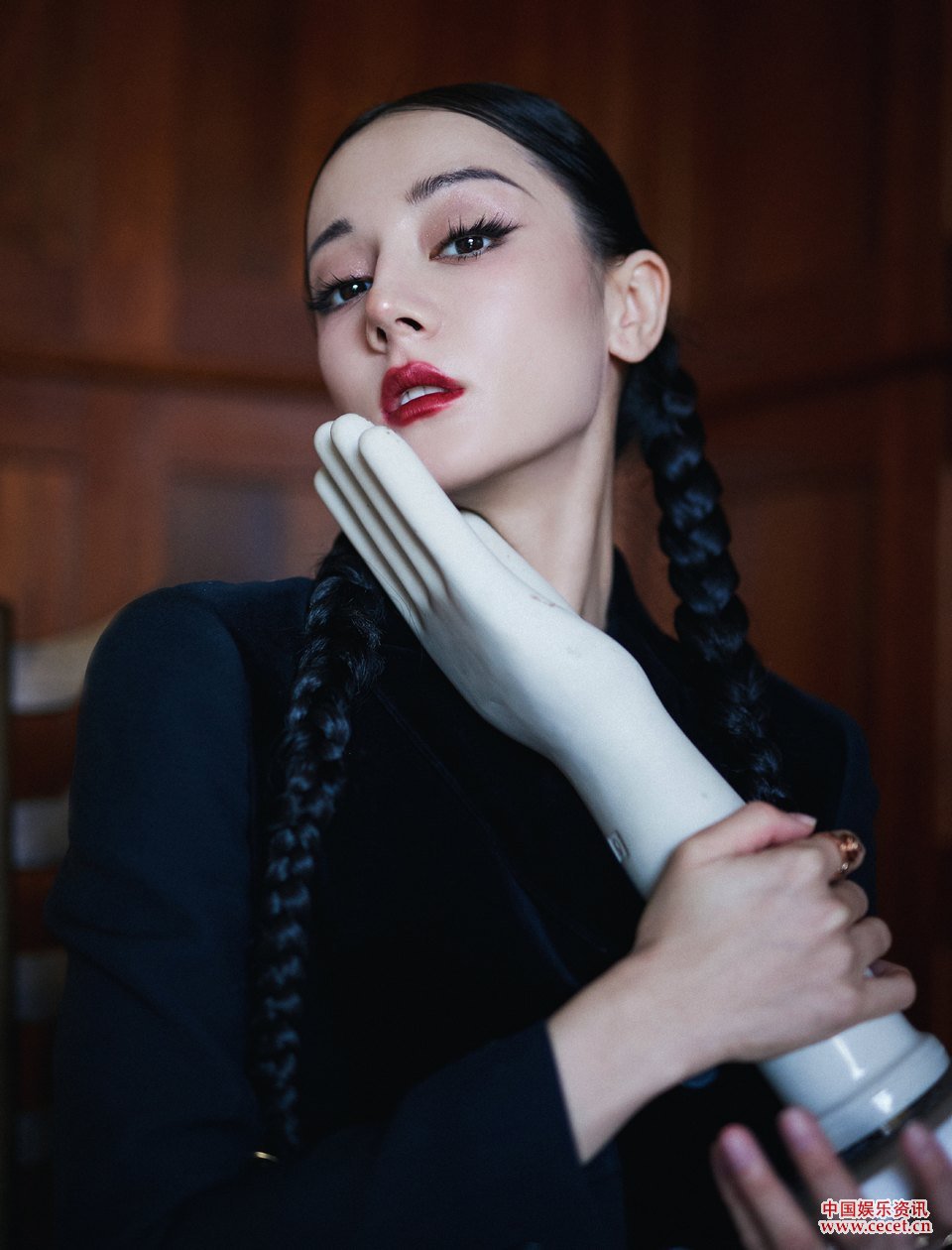 迪丽热巴黑色长裙西装套装 沉浸式拍摄致意经典