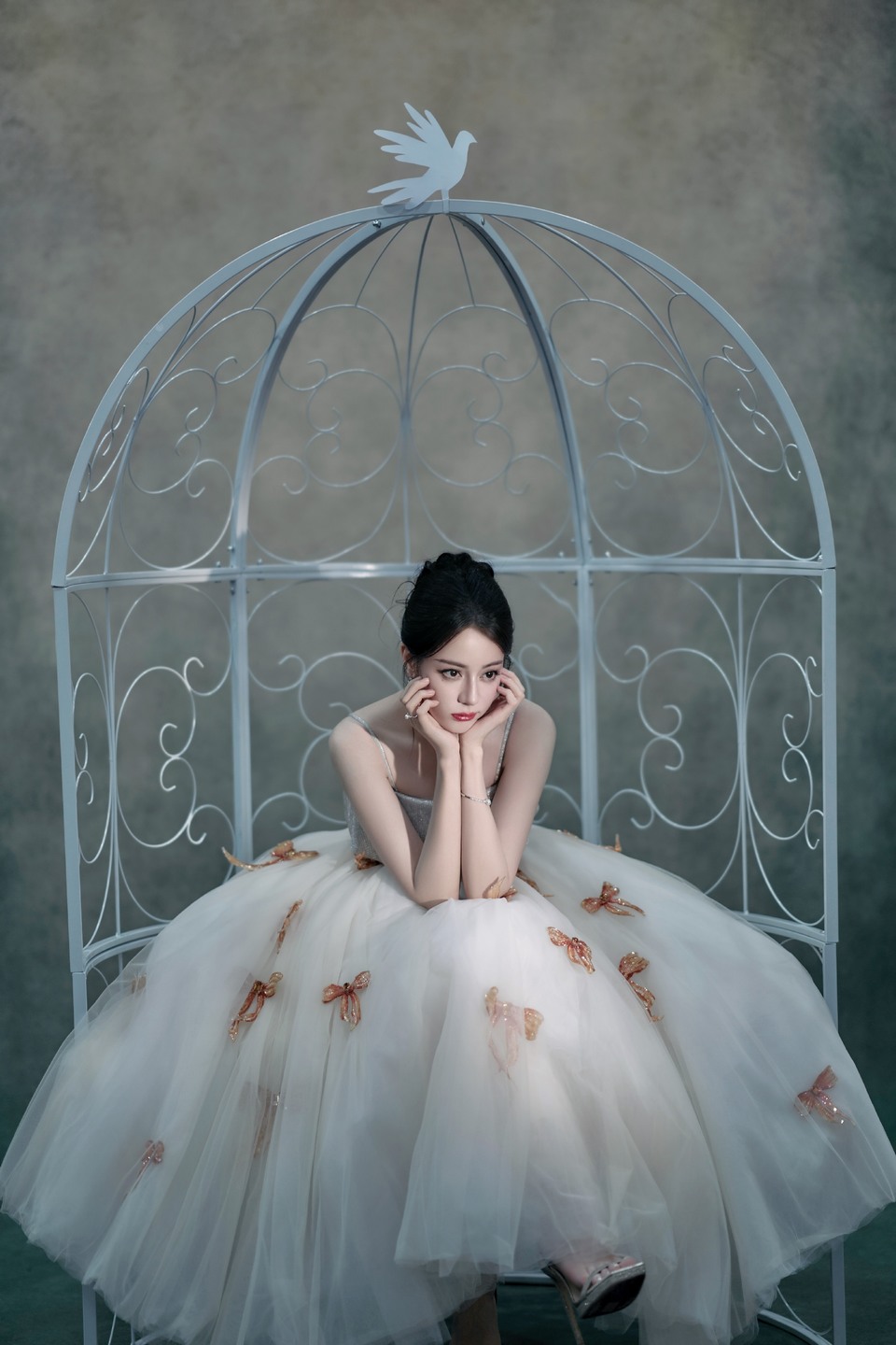 迪丽热巴身着典雅矜贵长裙 油画意境浪漫缱绻