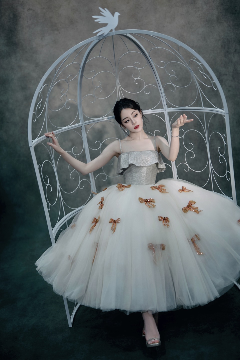 迪丽热巴身着典雅矜贵长裙 油画意境浪漫缱绻