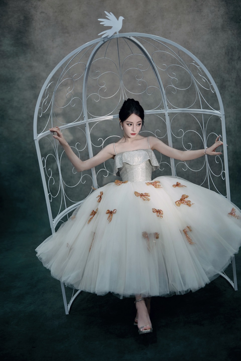 迪丽热巴身着典雅矜贵长裙 油画意境浪漫缱绻