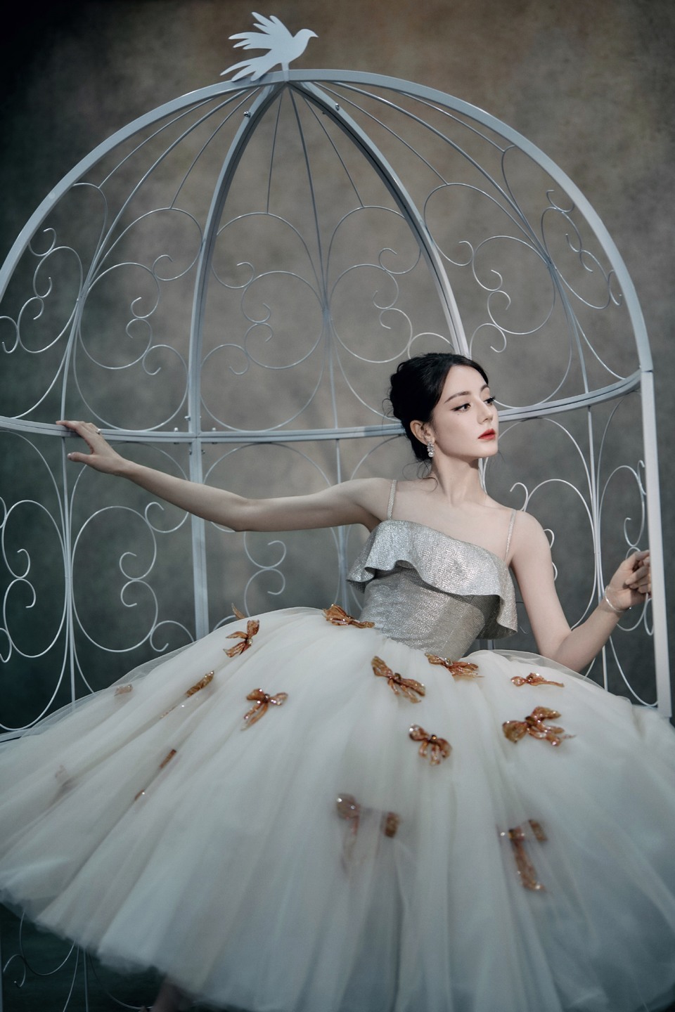 迪丽热巴身着典雅矜贵长裙 油画意境浪漫缱绻