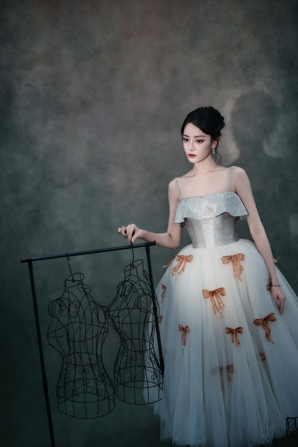 迪丽热巴身着典雅矜贵长裙 油画意境浪漫缱绻