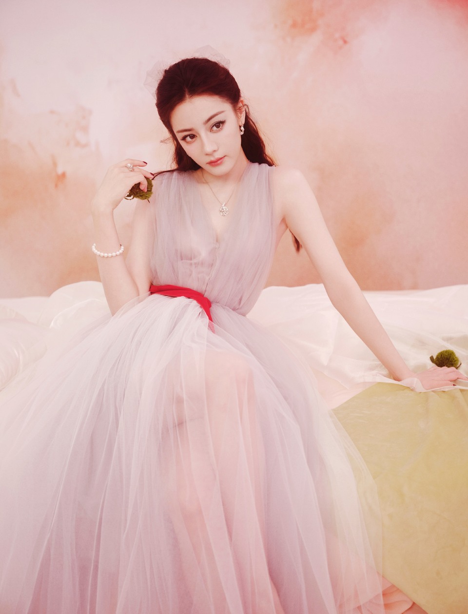 迪丽热巴色彩晕染幻梦 柔纱如同云絮轻盈飘逸