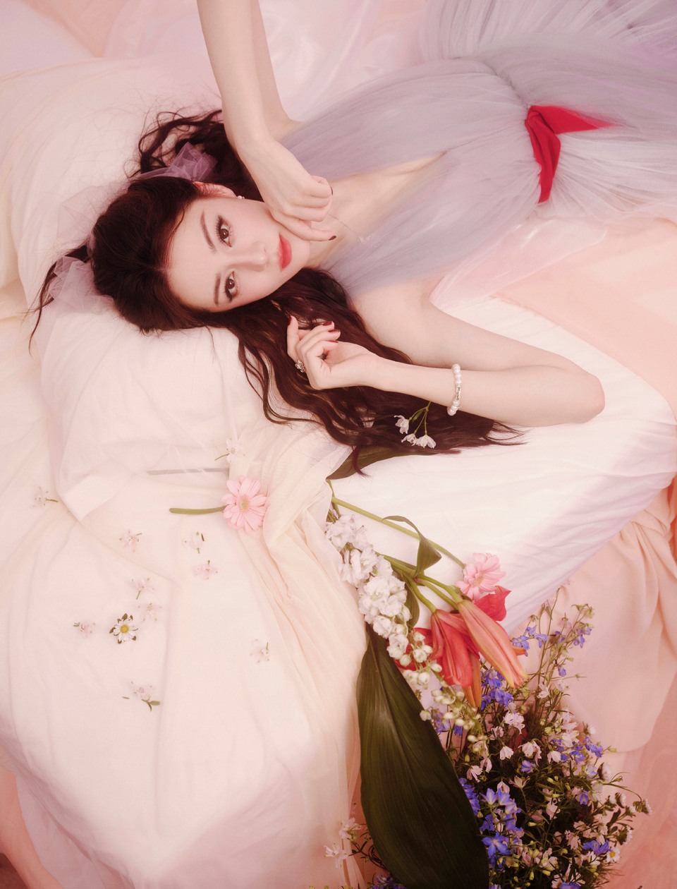 迪丽热巴色彩晕染幻梦 柔纱如同云絮轻盈飘逸