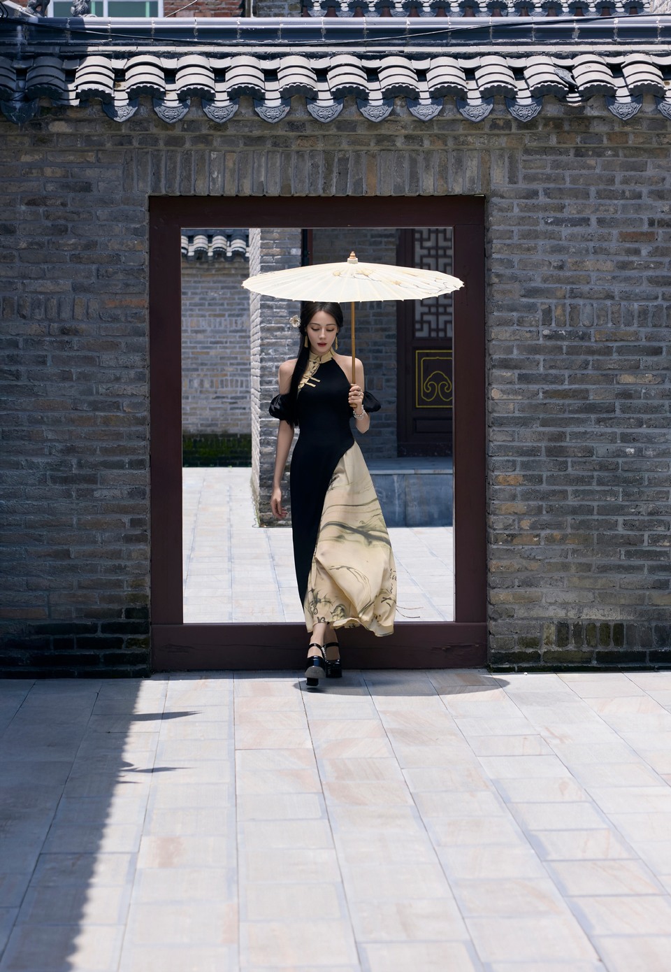 迪丽热巴水墨光影交错 挥扇半掩花枝展清绝
