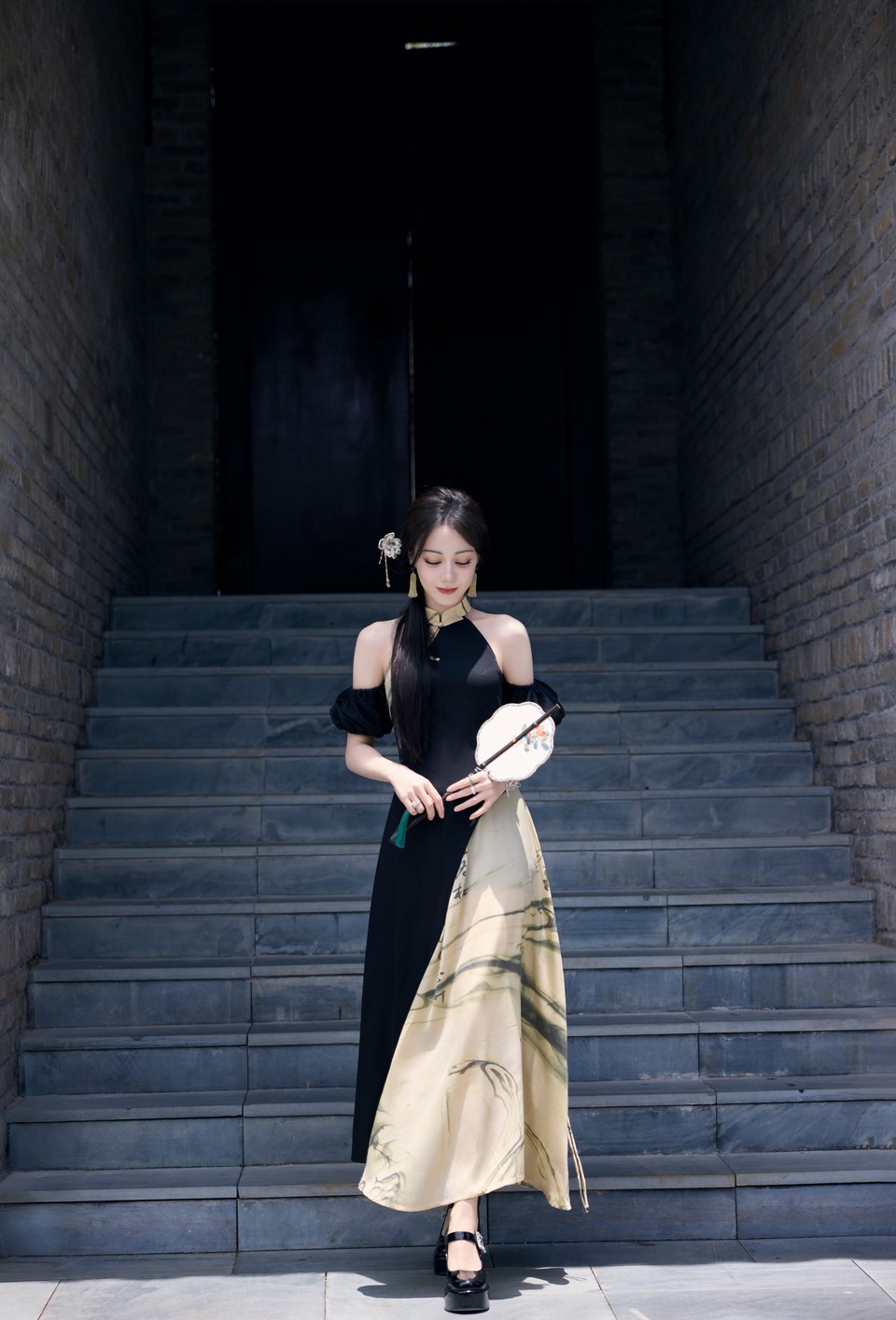 迪丽热巴水墨光影交错 挥扇半掩花枝展清绝