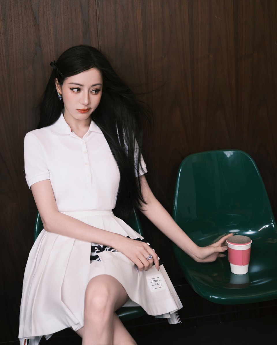 迪丽热巴白色学院风洋溢青春格调 绽放自信魅力