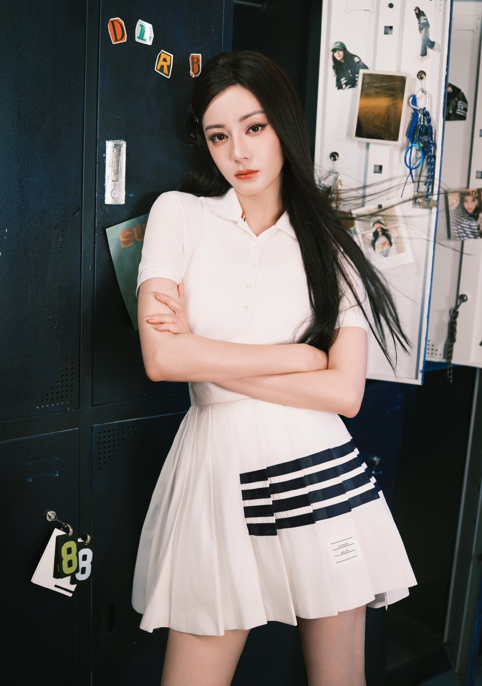 迪丽热巴白色学院风洋溢青春格调 绽放自信魅力