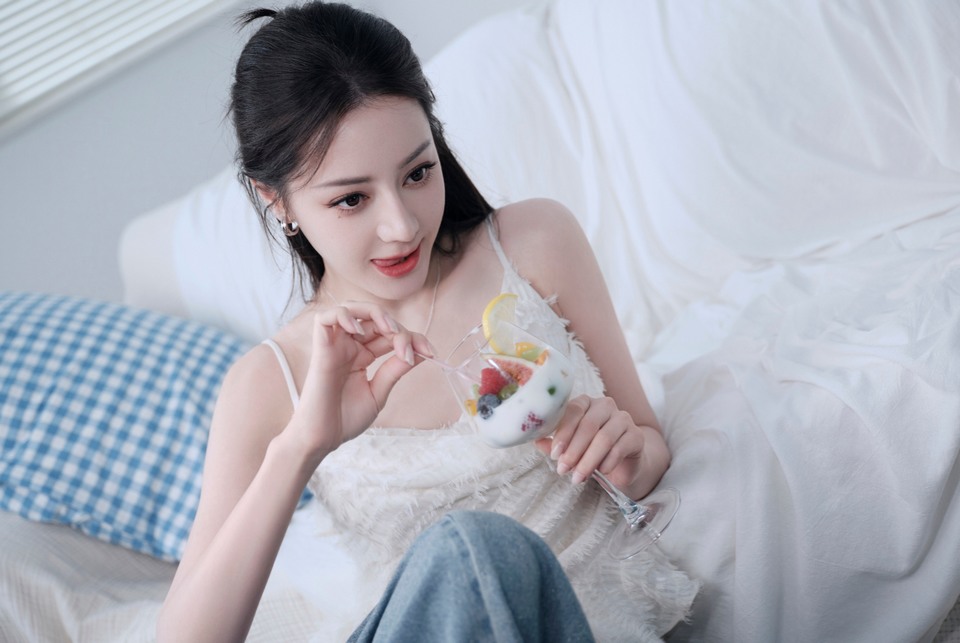 迪丽热巴清爽蓝白色系 尽享慵懒惬意时光