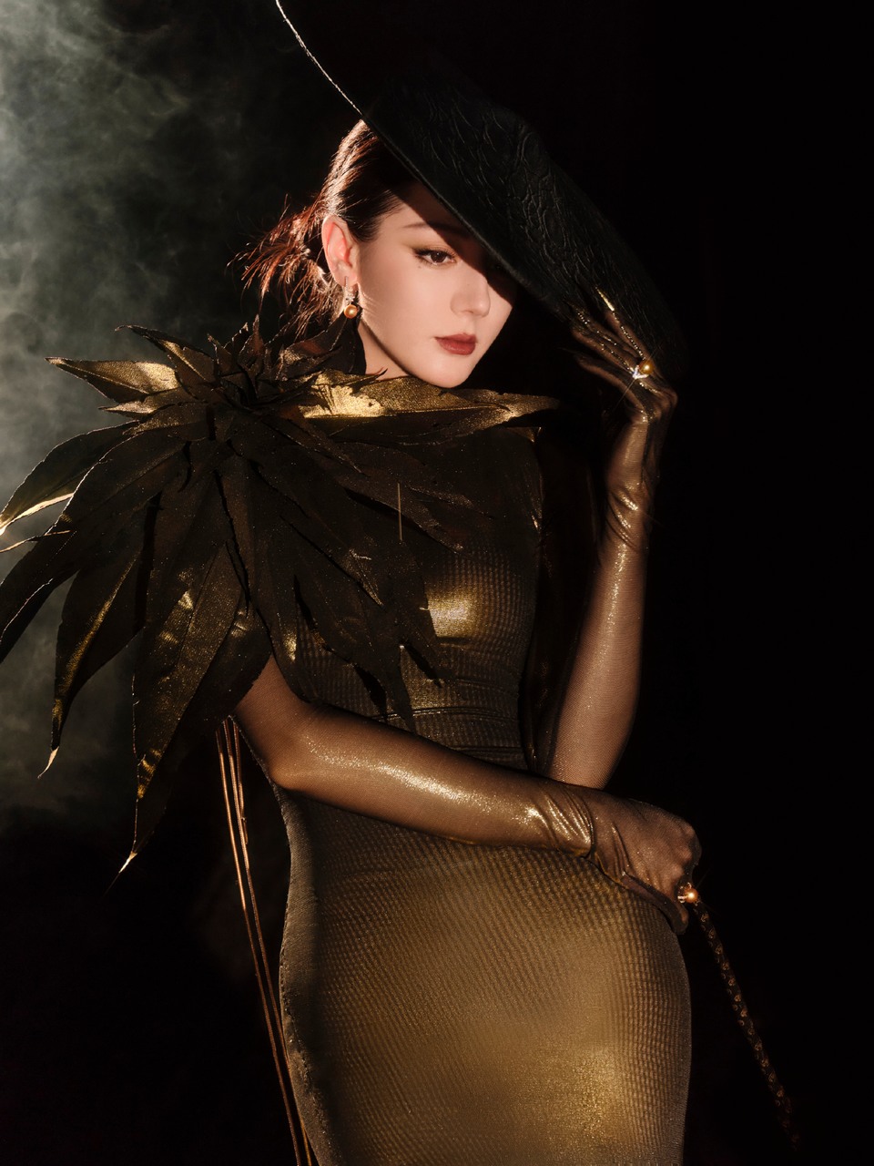 迪丽热巴流光缀衣若揉碎星芒 墨色裙摆似晕染夜影
