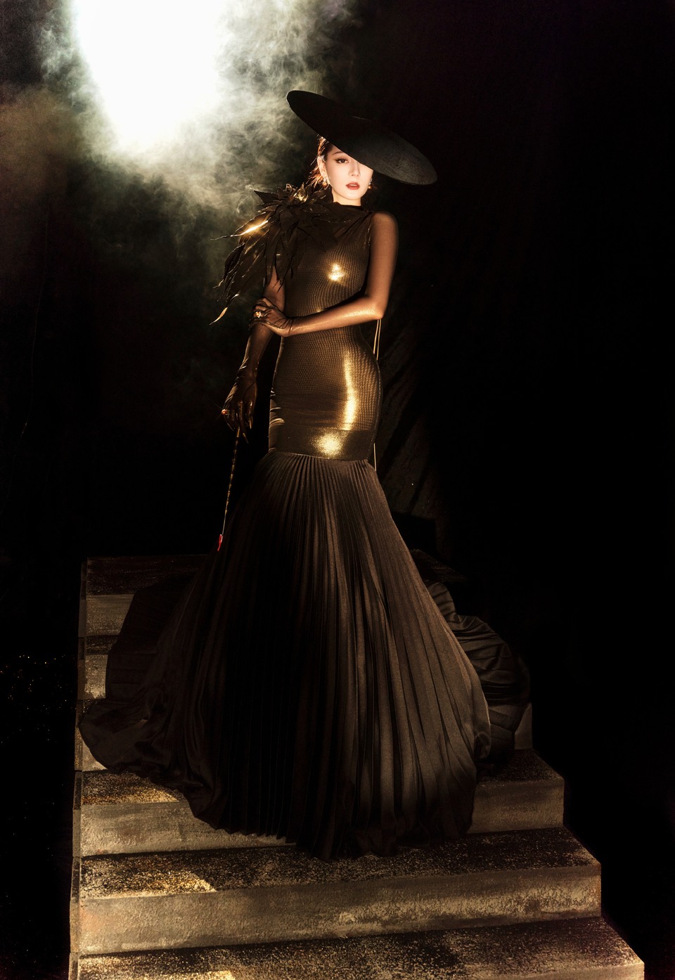 迪丽热巴流光缀衣若揉碎星芒 墨色裙摆似晕染夜影