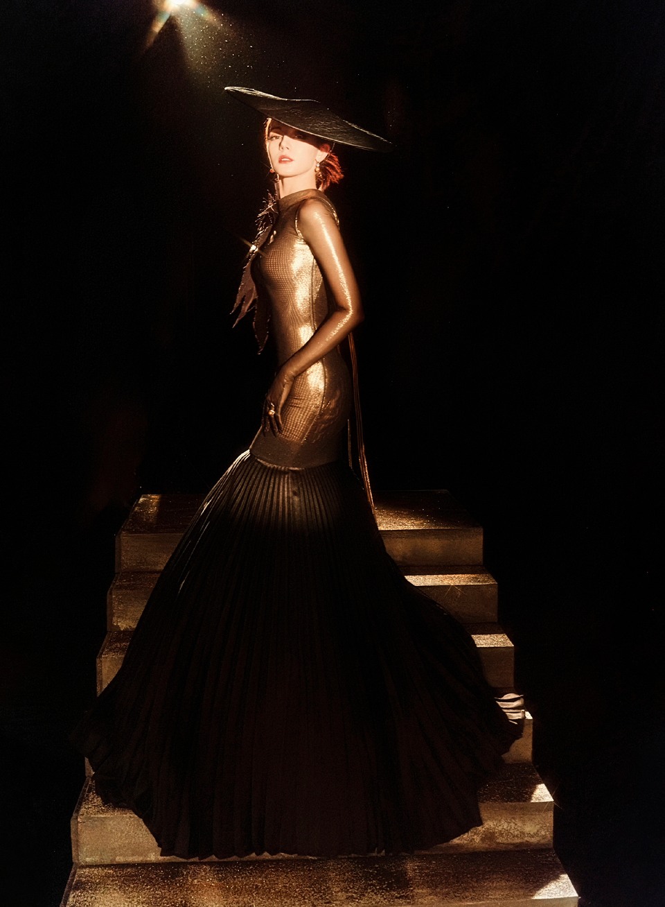 迪丽热巴流光缀衣若揉碎星芒 墨色裙摆似晕染夜影