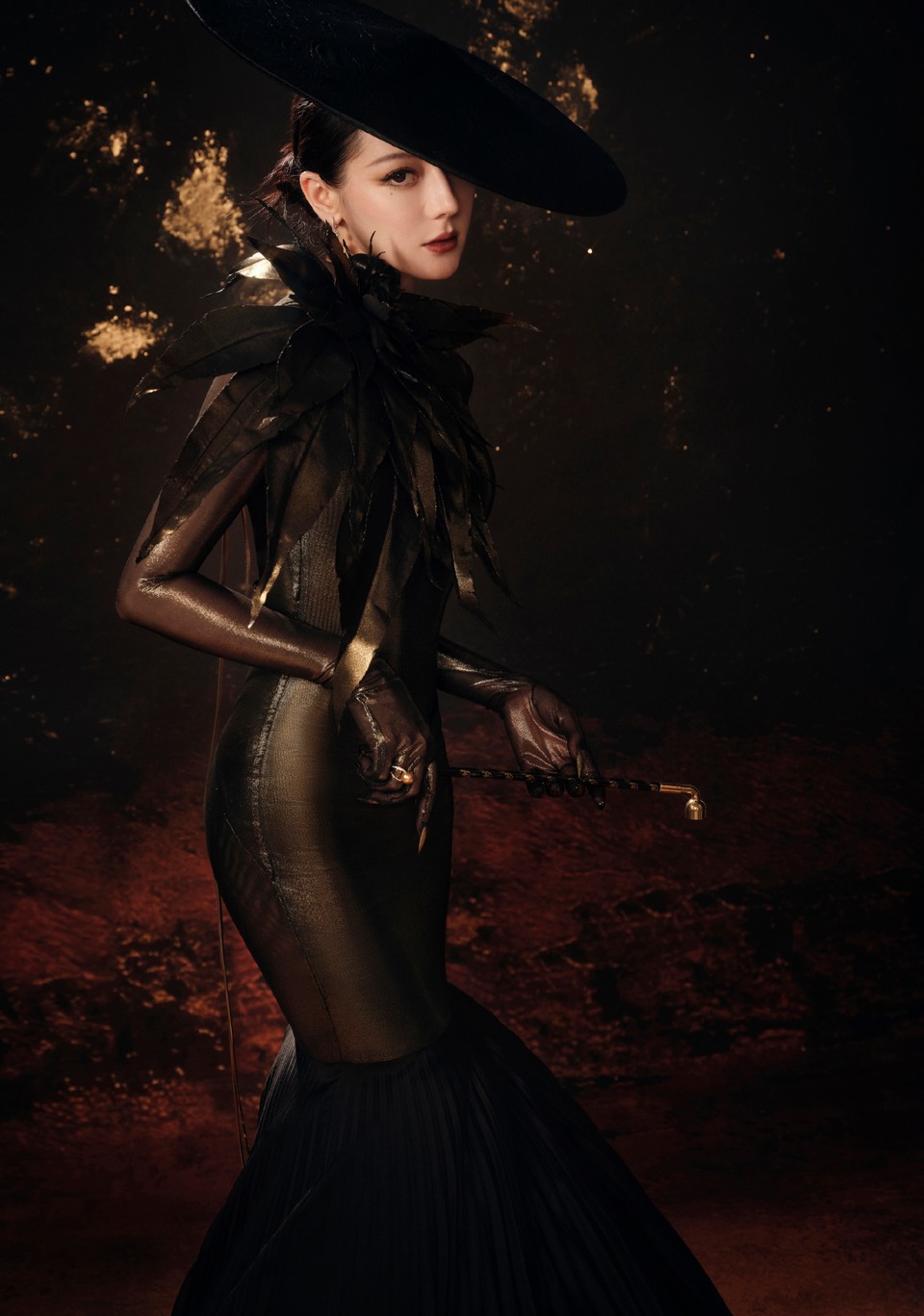 迪丽热巴流光缀衣若揉碎星芒 墨色裙摆似晕染夜影