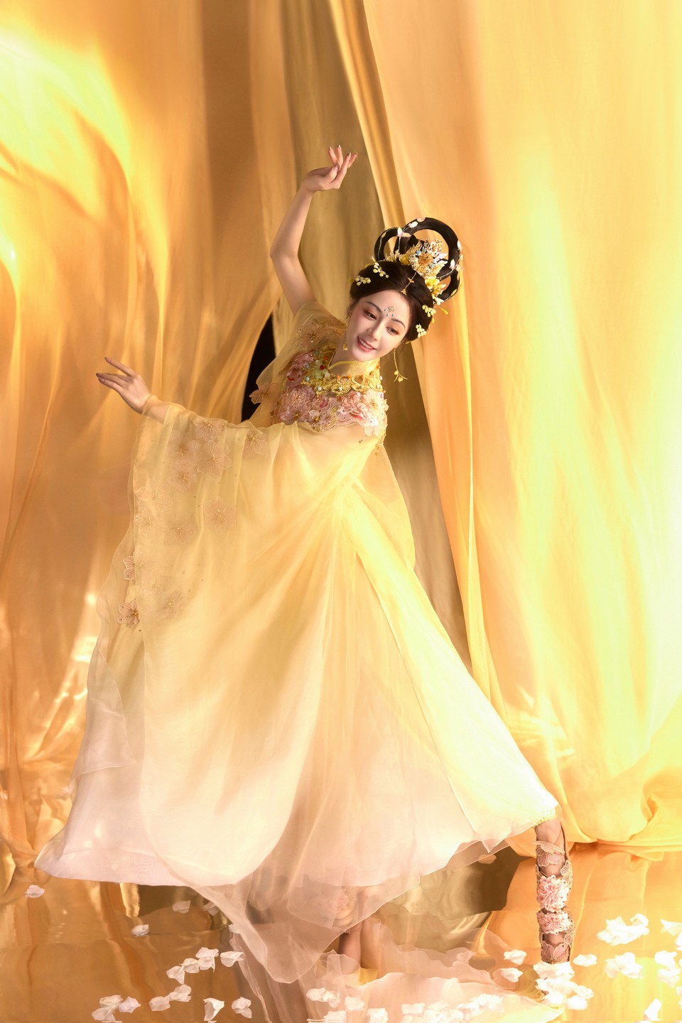 迪丽热巴玲珑金钗映月光 鹅黄襦裙漾温柔