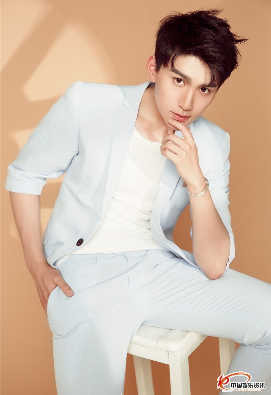 丁宇佳休闲西装写真 目光清澈深情地望着镜头