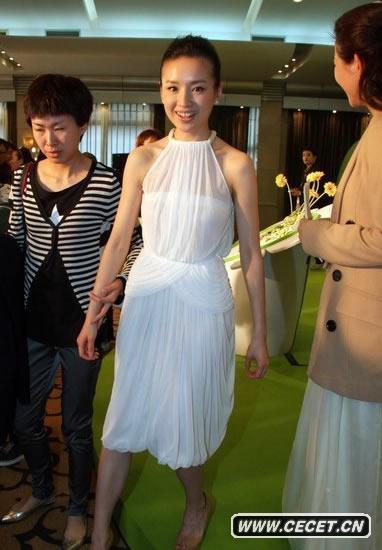 董洁初为人母清纯依旧 一袭白色纱裙十分清纯
