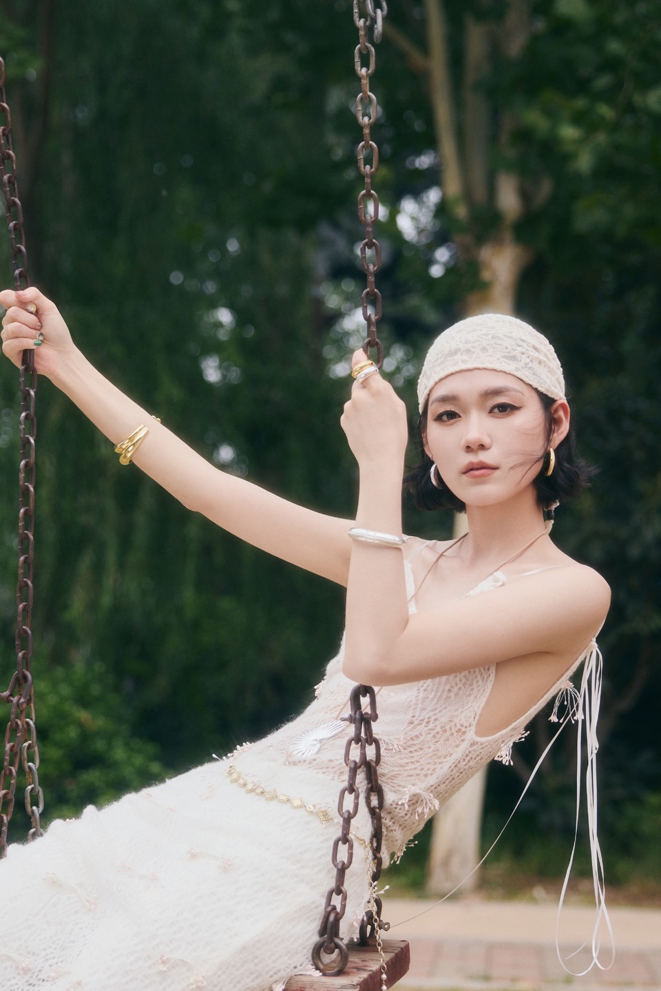 段奥娟步入洛阳林间光斑为裳 感受自由的风