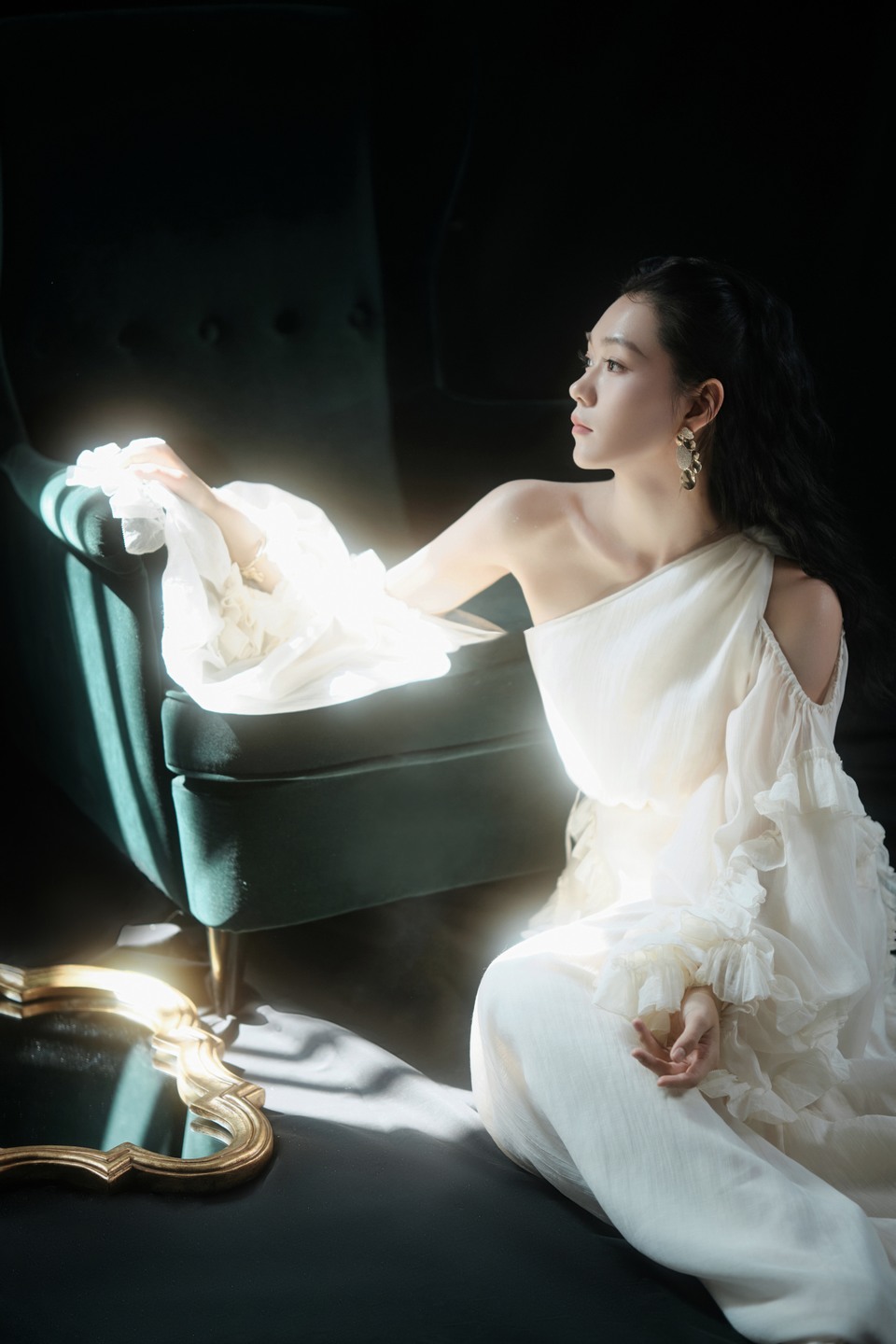 段奥娟白色裙摆荡起初秋的涟漪 开启摆拍模式