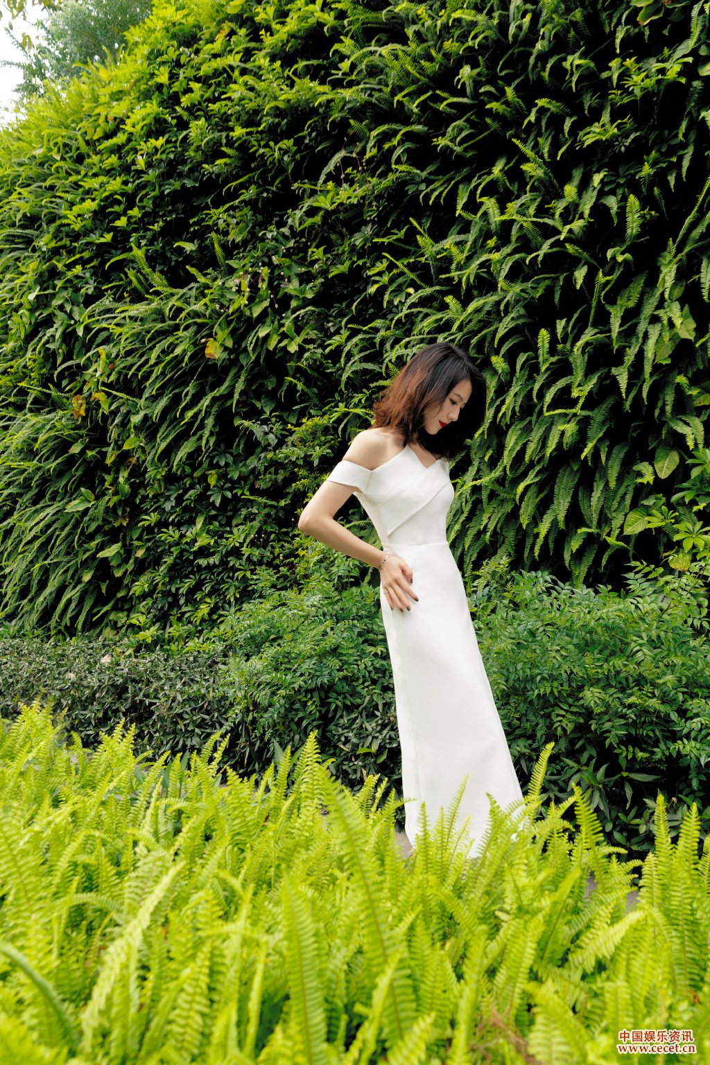 高圆圆白色露肩长裙照 眼波流转顾盼生辉