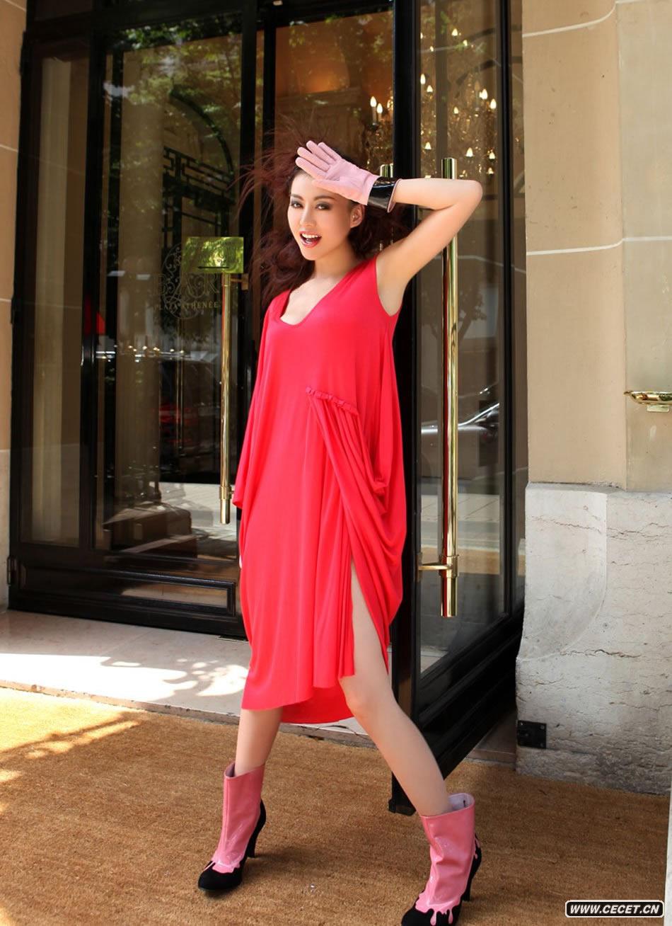 巩新亮法国拍摄写真 曲线玲珑红衣诱人