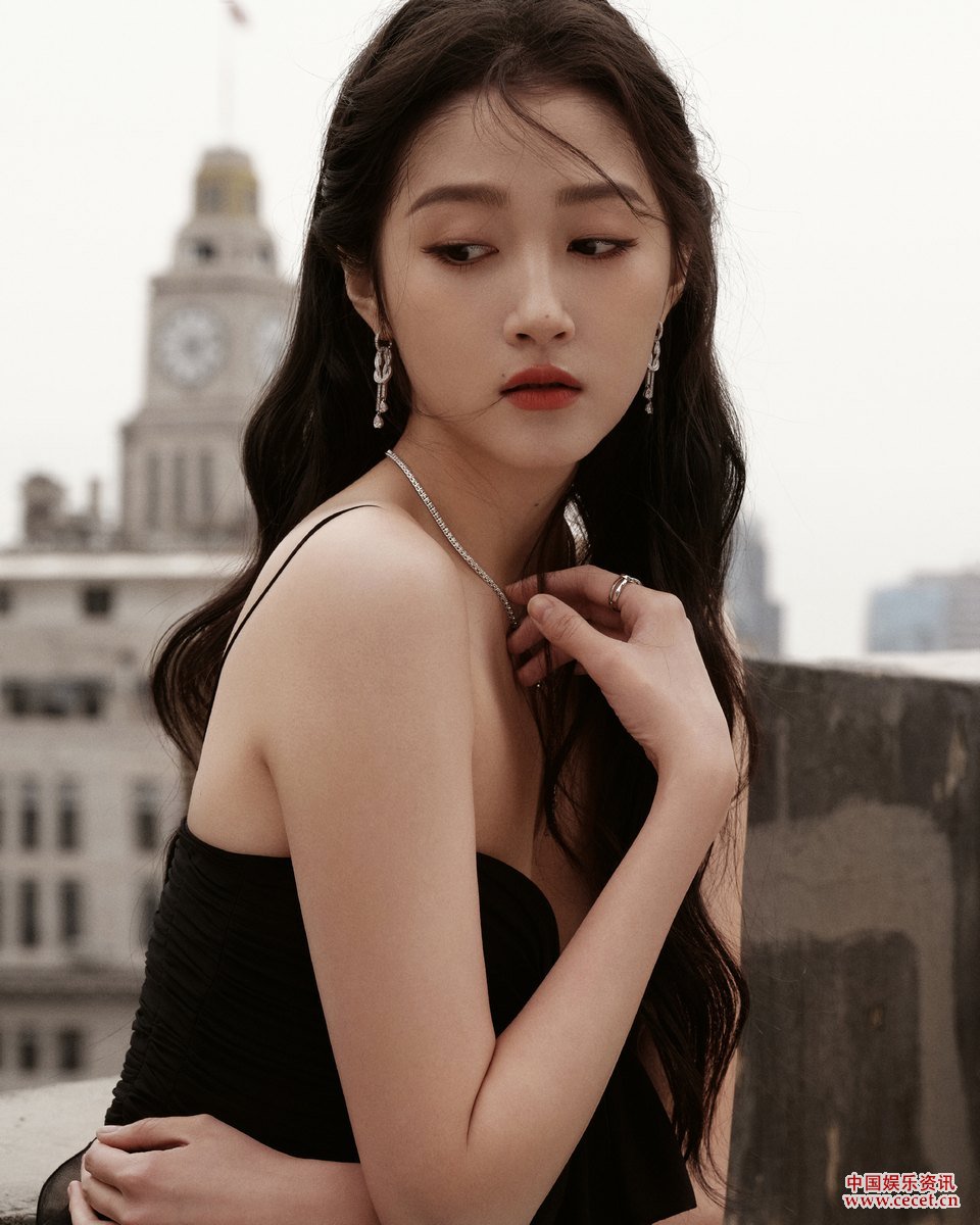 关晓彤薄纱小黑裙造型 摩登都市纱裙飞扬
