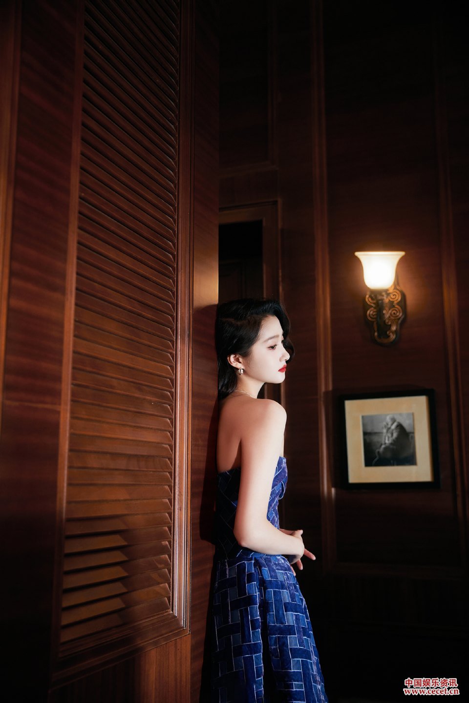 关晓彤一袭蓝色花朵裙 裙上生花复古优雅