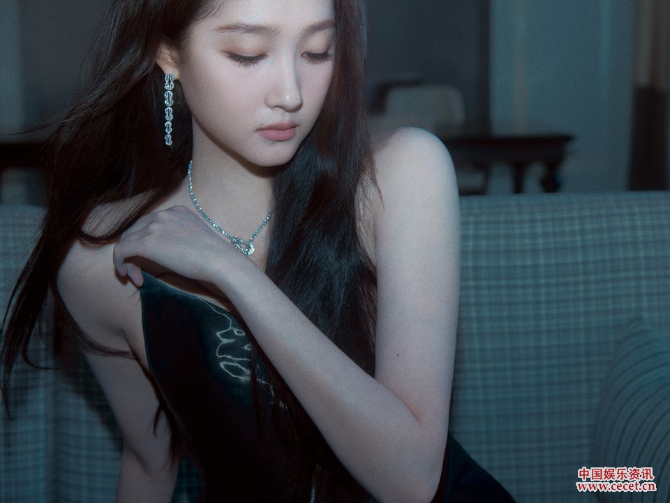 关晓彤蝴蝶结星光薄纱礼服 黑灰交接随之摆动