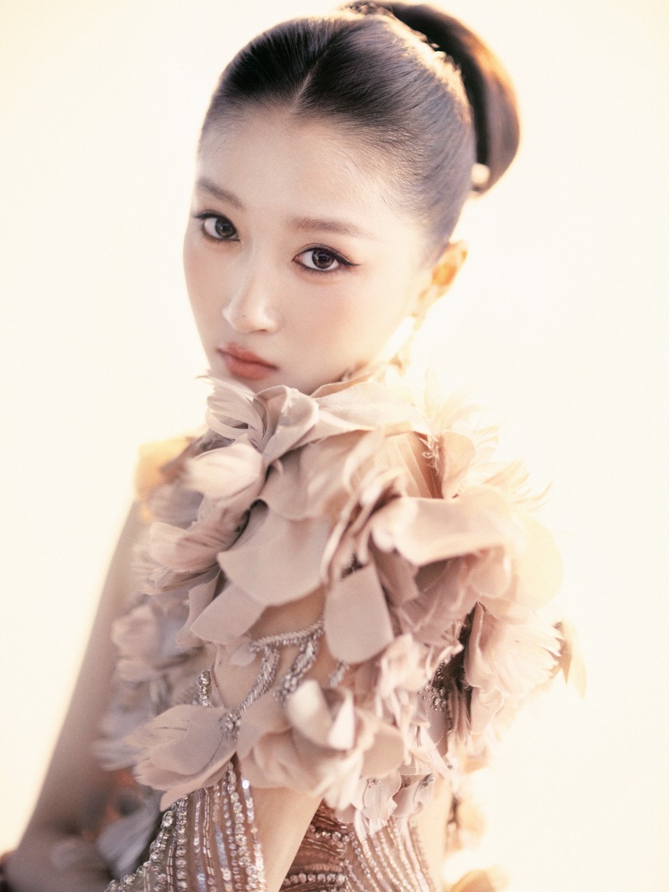 关晓彤飘逸裸色轻纱 光影交汇尽显纯粹之美