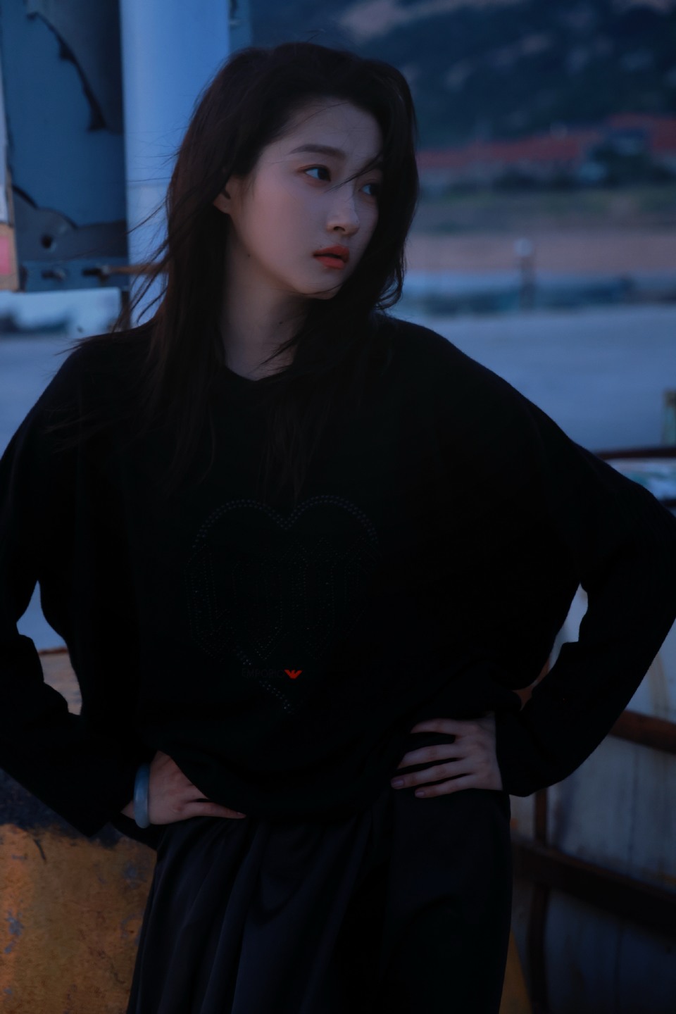 关晓彤漫步在码头 日落后的蓝调时刻美到发光