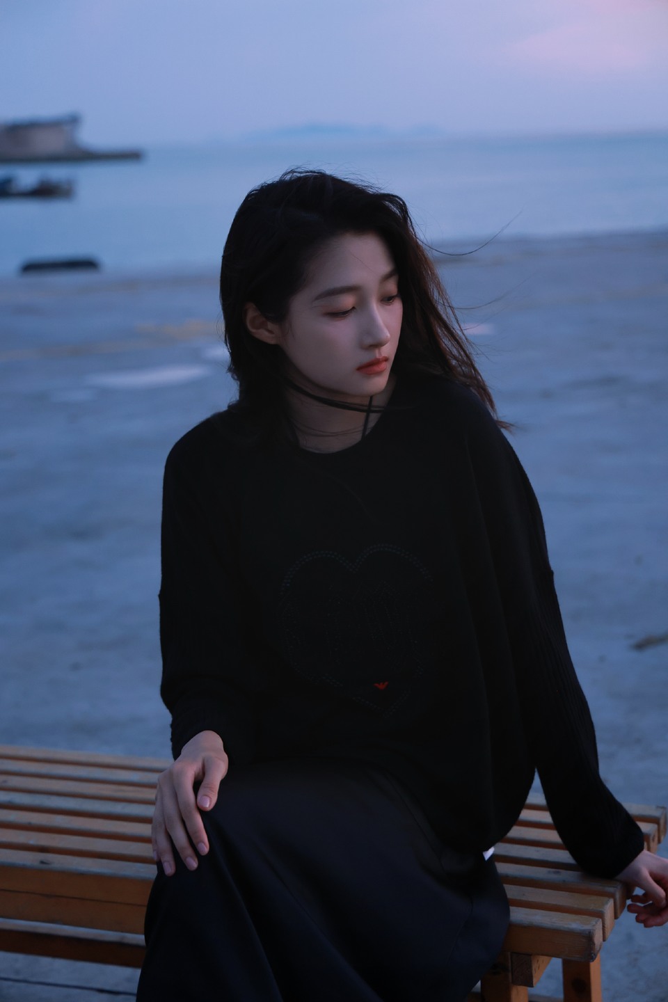 关晓彤漫步在码头 日落后的蓝调时刻美到发光
