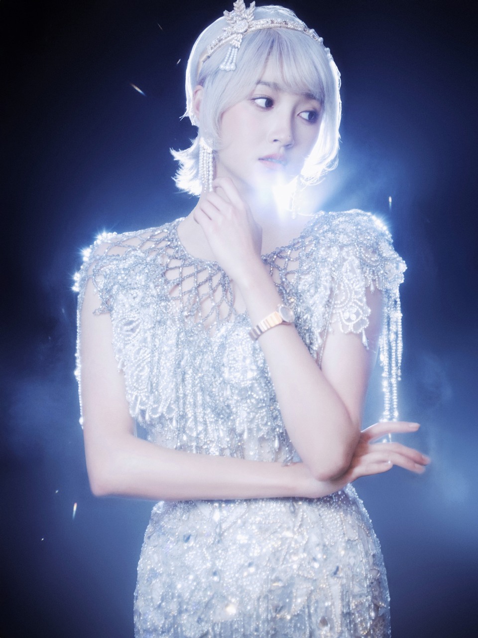 关晓彤银色发丝珍珠点缀 钻石环绕裙身充满神性