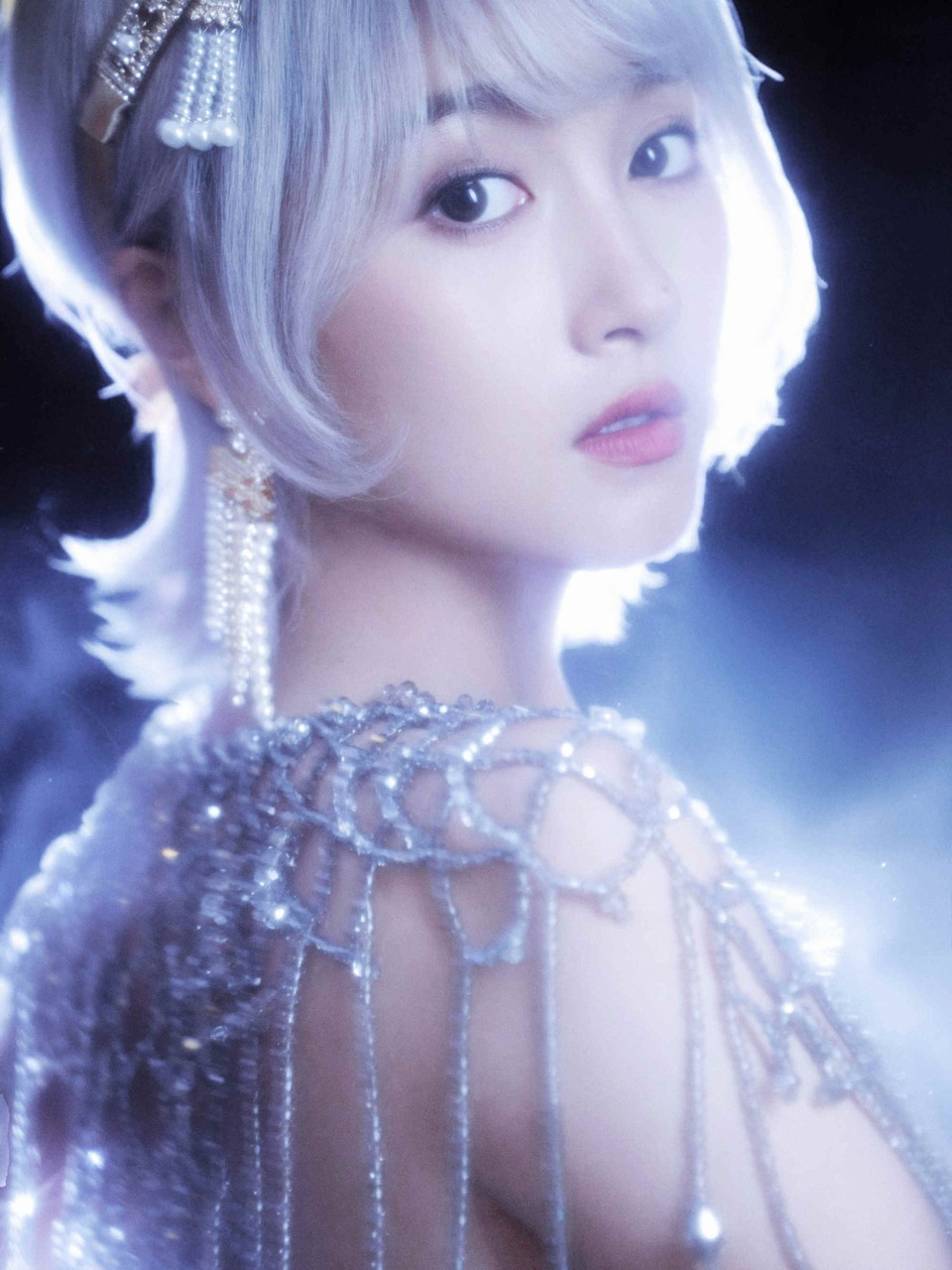 关晓彤银色发丝珍珠点缀 钻石环绕裙身充满神性