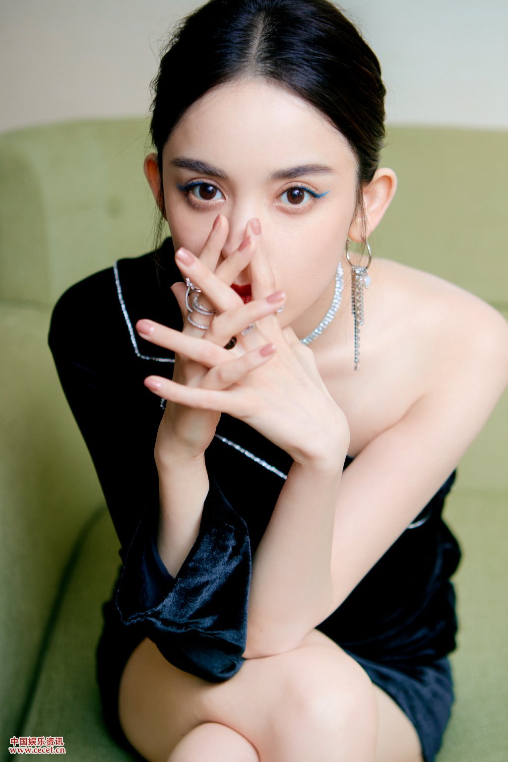 古力娜扎斜肩连衣裙 湖蓝色眼线尽显科技感