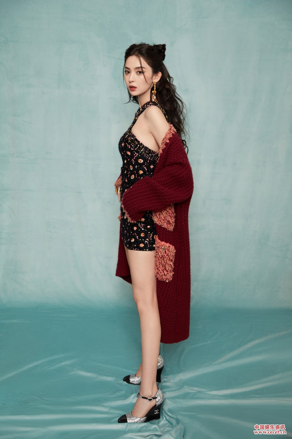 娜扎酒红色外套与金色刺绣碰撞出全新质感
