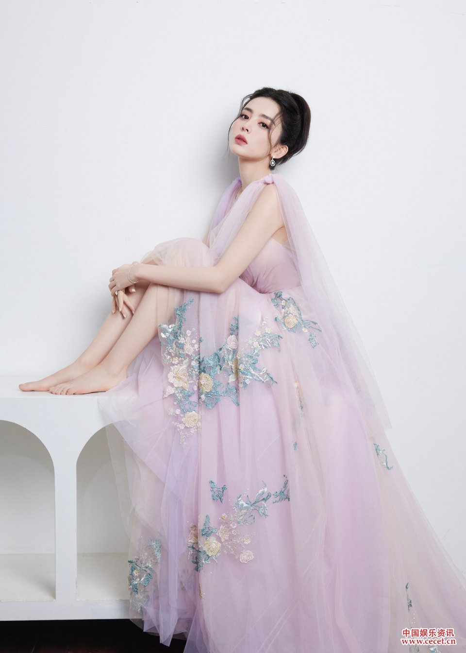 娜扎淡紫色纱裙翩然而至 美目流转裙摆轻飘