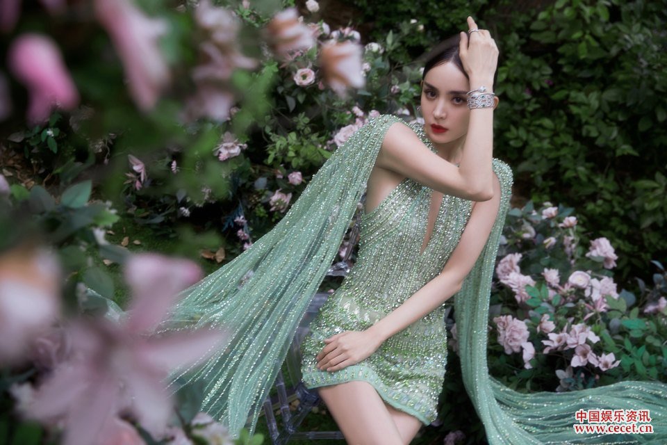 娜扎一抹青绿薄纱拂动 误闯翩然梦境的异域神女