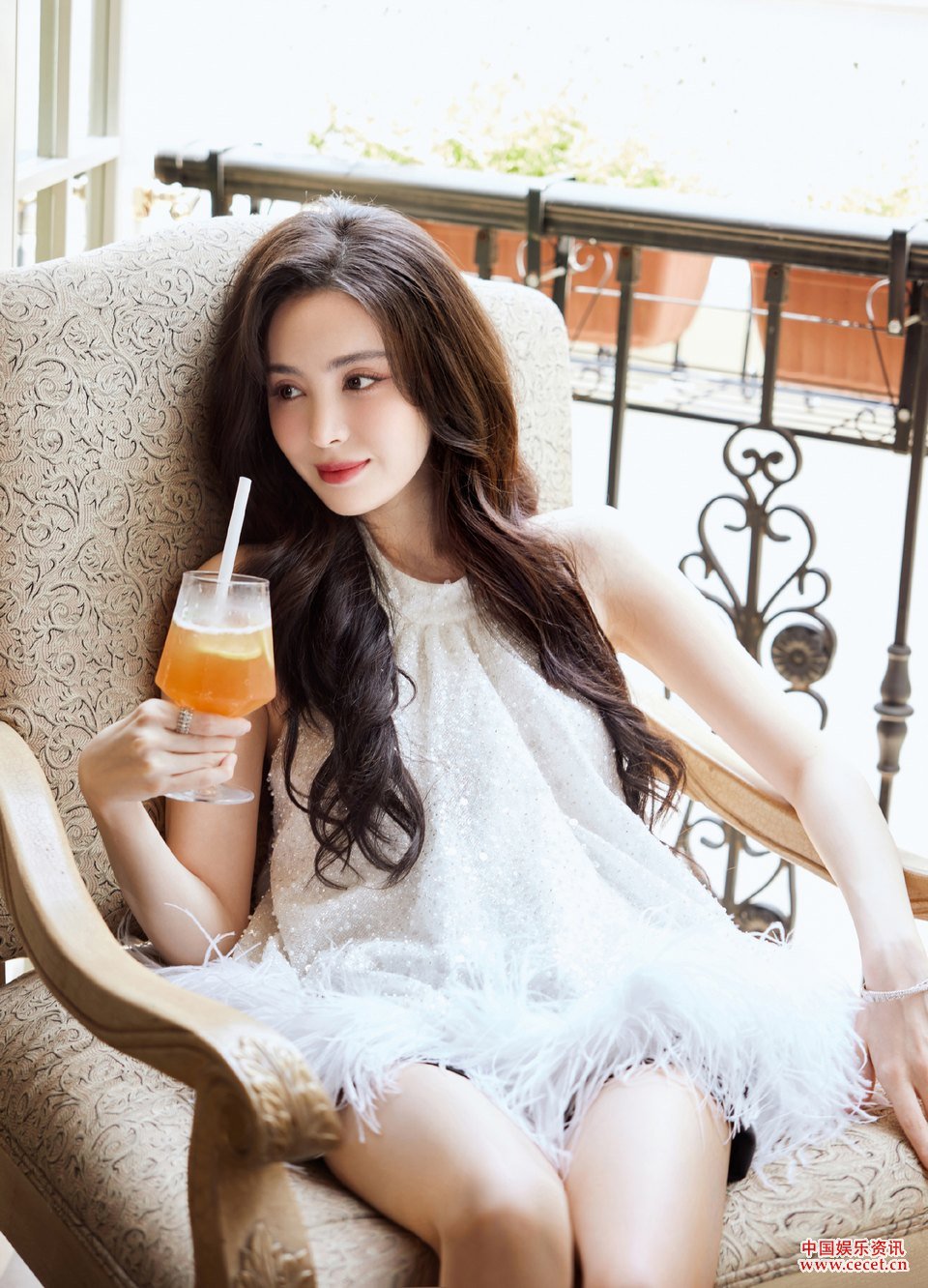 娜扎雪白羽毛精致灵动 飘逸卷发绽放魅力